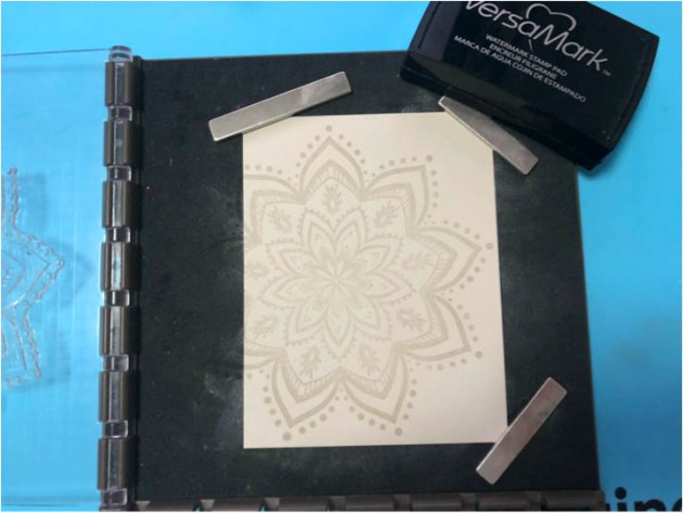 Select your color of cardstock and ink your stamp with VersaMark.