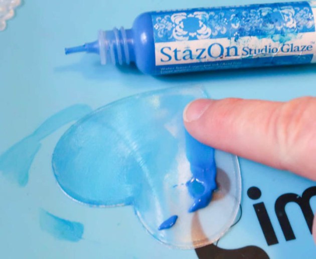 Rub a thin layer of Blue Hawaii StazOn Studio Glaze over the medium size shape and let dry.