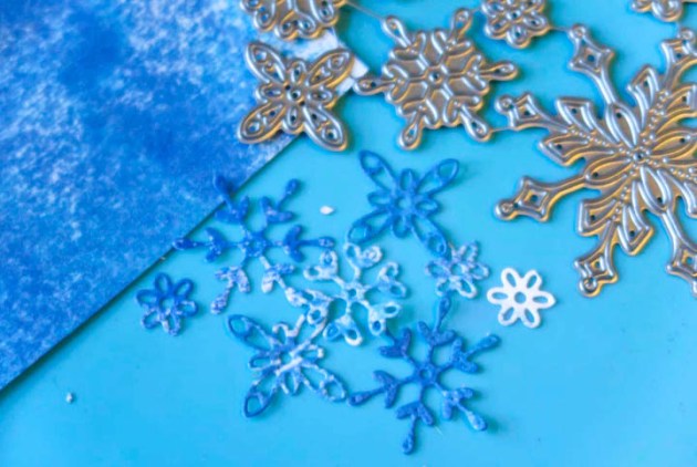 Use a brad to attach desired snowflakes to the center of the ornament.