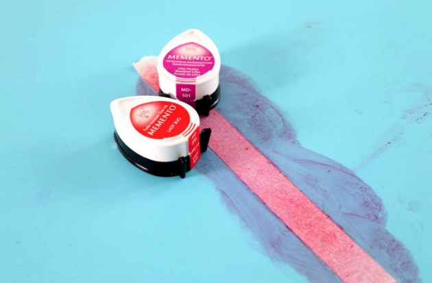 Use Memento DewDrop ink pads to add color to the masking tape strip.