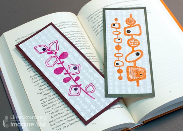 Create a few bookmarks on the same go. Play with different color combinations and patterns. For this multicolor technique, you can use any patterned stamp that has some simple details suitable for highlighting. Both rubber and clear stamps will work fine.