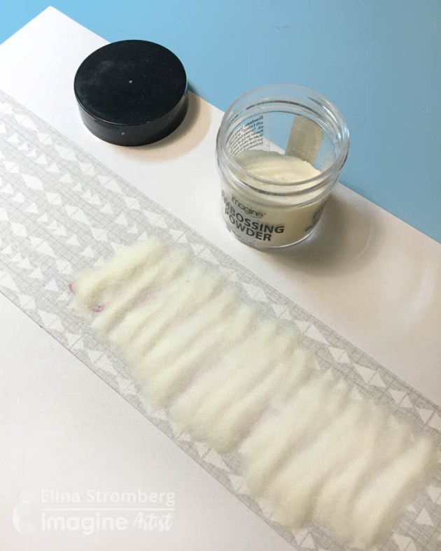 Heat-emboss the stamped pattern using clear embossing ink. Trim the bookmark to size and mat on a piece of matching colored or patterned paper.