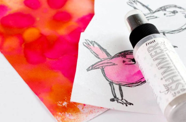 Mist your tag and painted birds using Shimmer Spray in Frost. It gives the end product a beautiful shimmer.