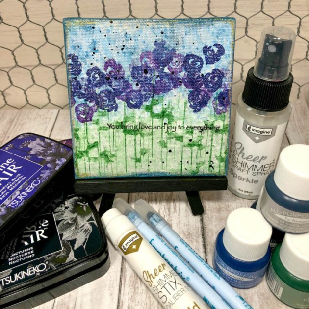 We all need a little inspiration sometimes and, for this project, I took my inspiration from the Impressionism style of paintings from the 1860s.  It resulted in a fun project using the All-Purpose inks and other Imagine products to create a miniature floral scene on a 4”x4” flat panel canvas.