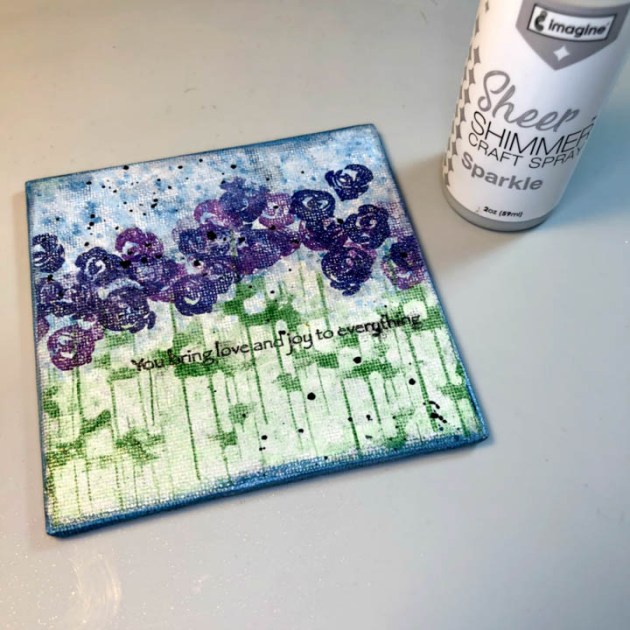 Spray canvas with Sheer Shimmer Craft Spray in Sparkle.