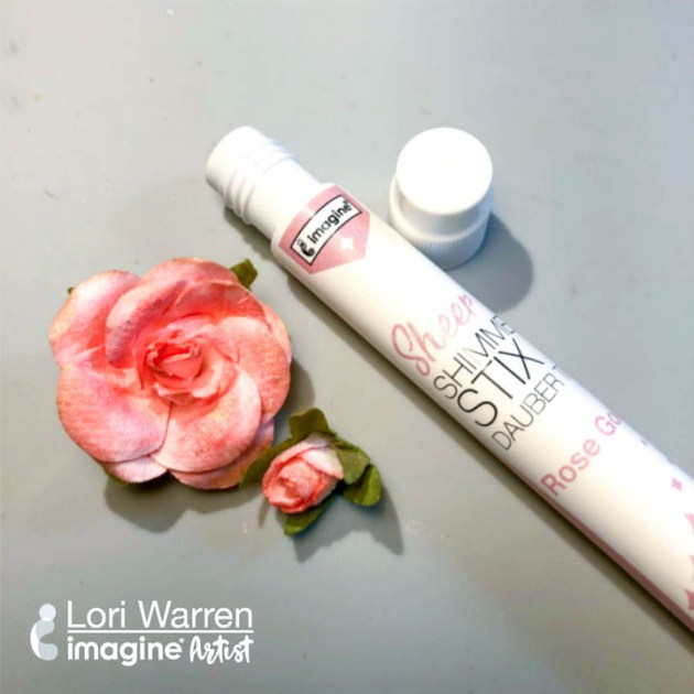 Apply Rose Gold Sheer Shimmer Stix to edge of flowers.