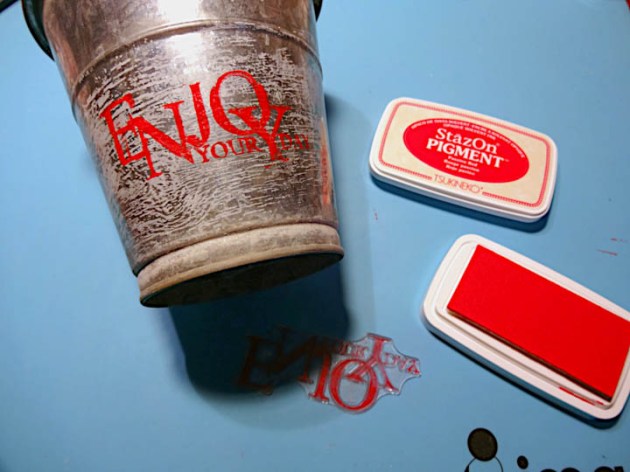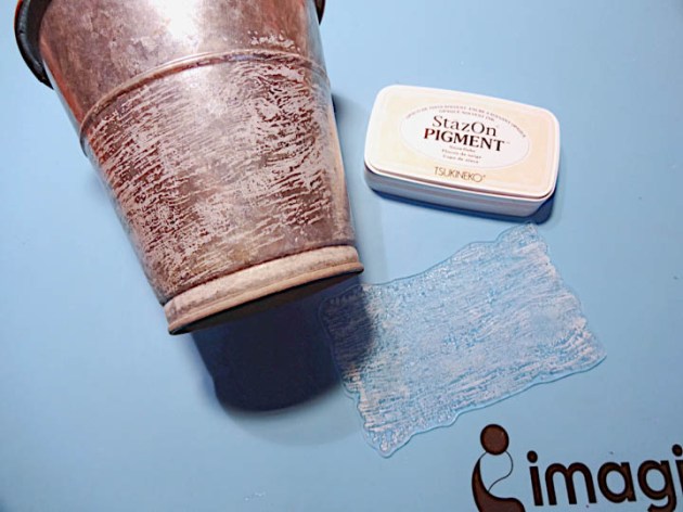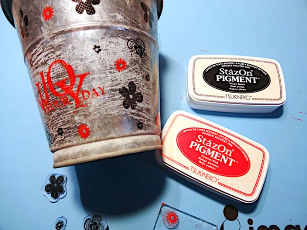 Today, I have created an easy and fun project to decorate tin flower pots to welcome spring, using the new StazOn Pigment ink pads and a couple of acrylic stamps. This also makes a nice project to use on making small Easter themed tin buckets to give as gifts.