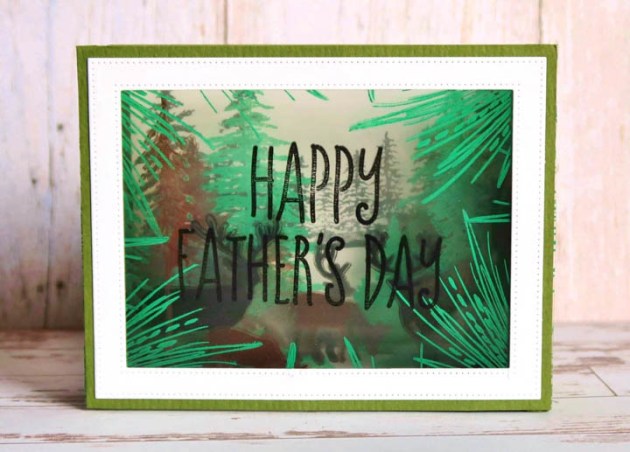 Cut a frame for the front of the card. Use Tear It Tape to affix the front acetate panel to the card frame.