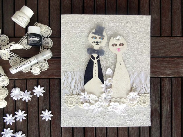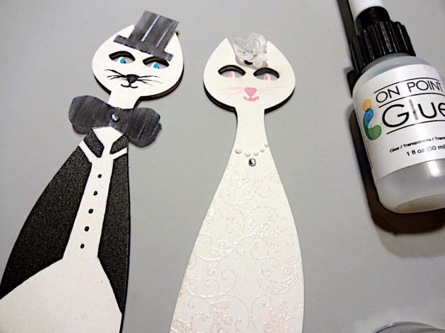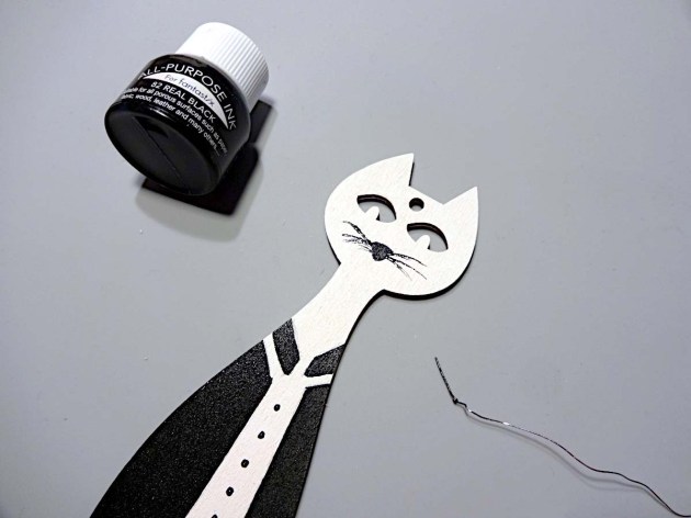 Use a paintbrush to add tuxedo detail to one of the cats (the groom) with the All-Purpose Ink in Real Black. Use a thin wire to add whiskers.