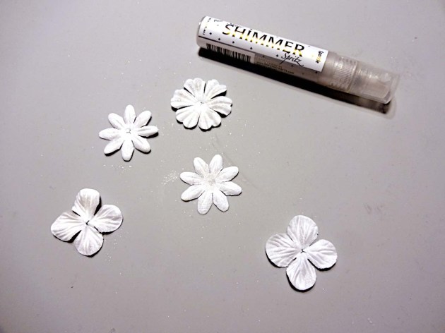 Spray paper flower and leaves with the Sheer Shimmer Spritz in Sparkle.