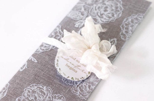 The beautiful white stamping on the acetate makes for an elegant look and feel, setting the scene for what’s to follow at the wedding.