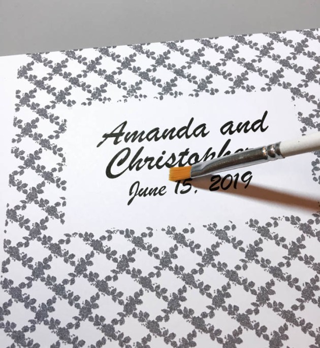 If the powder is sticking to the invitation text remove the powder with a clean brush. Heat set the powder with a heating tool.