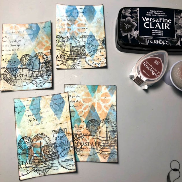 Cut cardstock panel to multiple 2.5” x 3.5” ATCs or Artist Trading Cards.