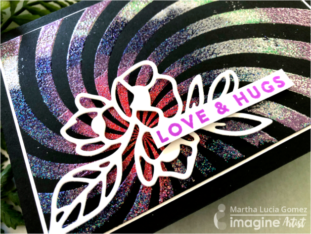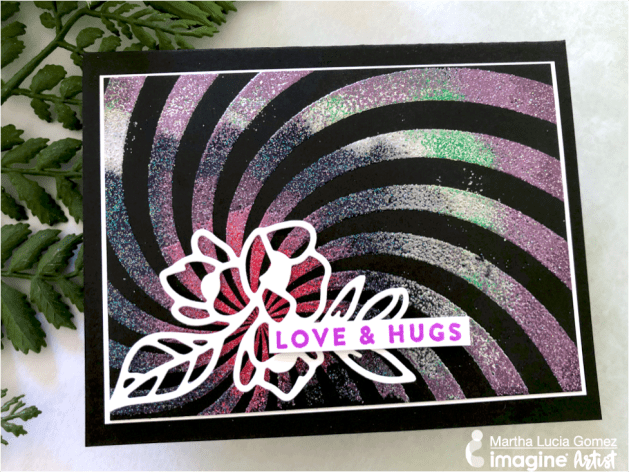 Hello there! Today, I have a Mboss Spiral card that I made featuring the new Mboss Embossing Powder from Imagine. I had the opportunity to buy this spiral background stamp a long time ago during a vacation but I never used it. I couldn’t find exactly what project this spiral shape would fit with. Now that Imagine has released the Mboss Embossing Powder, I made decided to use it for an embossing color blend project.
