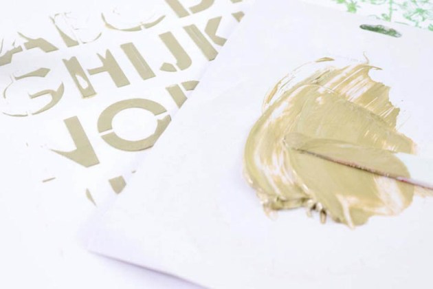 Once the paste is dry, add some more color to your background. Add 2 colors of Memento ink to a plastic packet and mist with water. Then lift the plastic packet and stamp the ink onto the background and leave to dry.