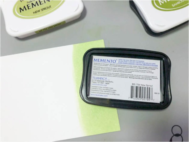 To make this card, I used three different green colors of Memento Ink. I started with the lightest New Sprout, continue with Bamboo Leaves and finalized with Cottage Ivy.