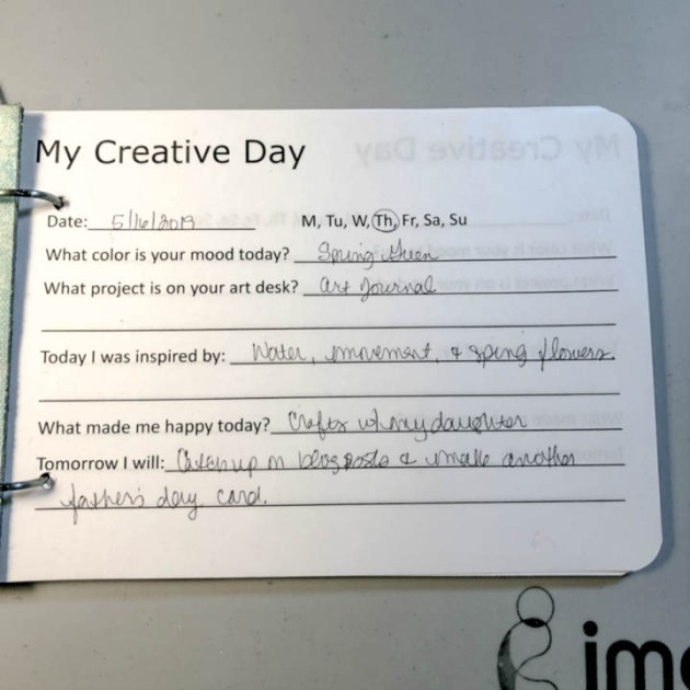 Interested is slowing down and being more mindful? A Daily Journal to document artsy ideas and creative thoughts might be just what is needed. This journal includes “My Creative Day” journal templates (with prompts for daily journaling), blank art pages (for art journaling, sketching and jotting down ideas) and a special hand decorated cover to house it all.