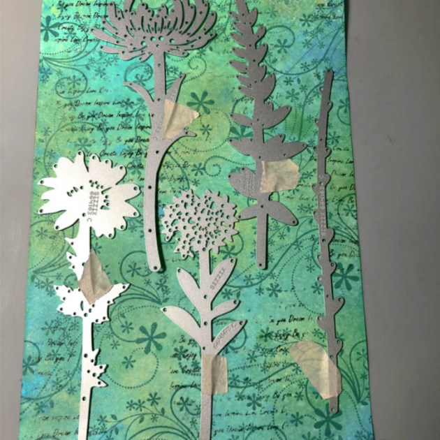 Use diecuts to cut out floral images from the card stock panel.