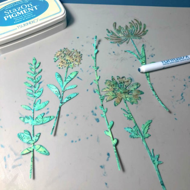 Apply shading to the flower by using a Fantastix tool with StazOn Pigment ink.