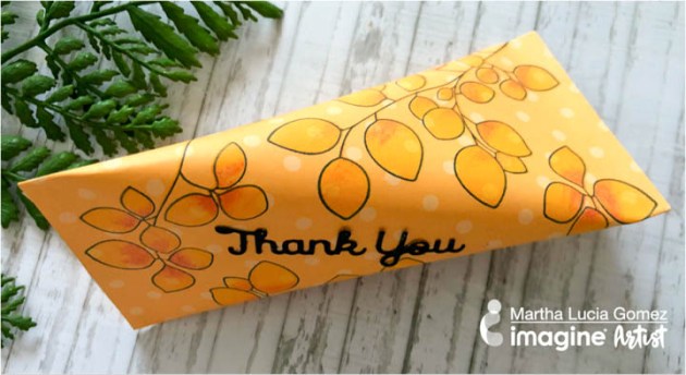 Hello friends! Today I have a quick package, normally called ‘Sour Cream Container’ shape. I created it with designer paper and added an extra special touch with Versa Magic Inks. I selected a two-step stamp from Altenew, the Leaf Canopy stamp set. It includes the lineal and solid images but this idea can be made with any type of stamps.