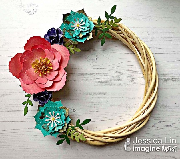 Hi everyone! Have you been enjoying the 3D projects for this month so far? I hope you are! Today I have a floral wreath project to share with you. Besides showing how you can assemble your own paper flowers, I’m also teaching you 3 ways to transform your die cuts! The before and after is as different as night and day and the extra steps definitely bring the flowers to life. Be sure to check out the video and see it for yourself!