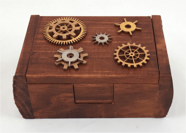 The fine point needle helps to get in the narrow spaces of the gears. And just like that, you have a nice steampunk-industrial keepsake box to keep for yourself or give as a gift.