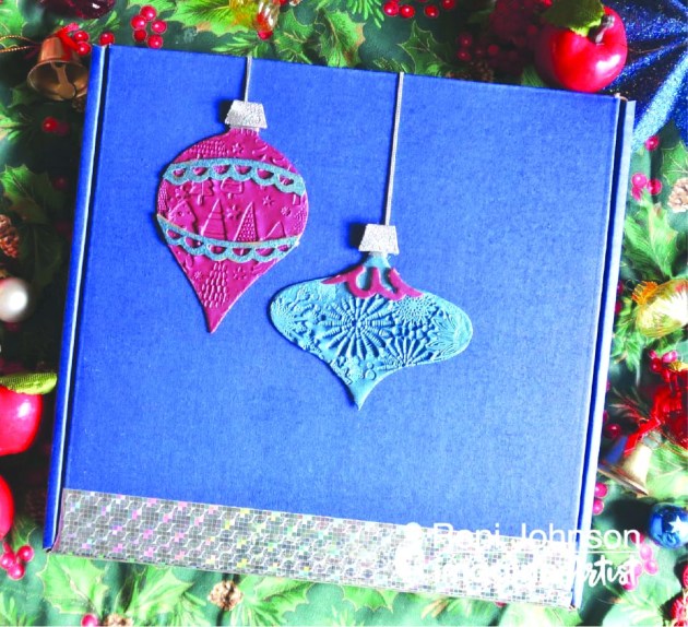It’s that time of the year to kick making into full gear. It is easier to create when you narrow your focus and choose a color scheme to work with. This year I have chosen Berry, Blue and Silver. I knew I wanted to make some “Mail-able Ornaments” for my far away friends. MBoss embossing powders are just the ticket!
