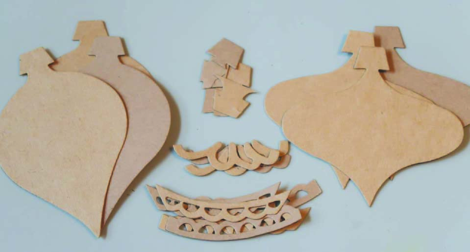 Die-cut or hand cut desired ornament shapes from a medium weight chipboard. I used the ornament die from Sizzix.