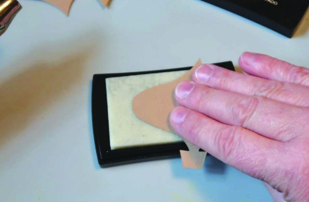 Pounce the ornament on a VersaMark pad until the entire ornament has been covered with the ink.