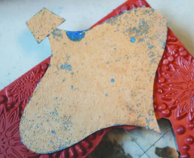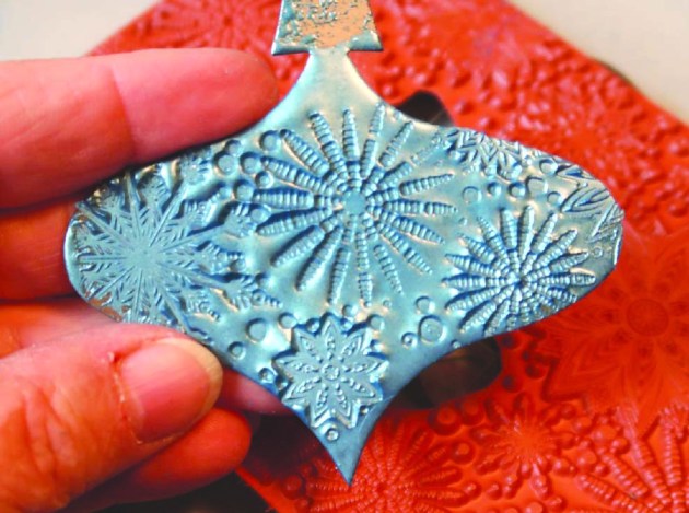 After the embossing powder has cooled, peel the ornament from the stamp.