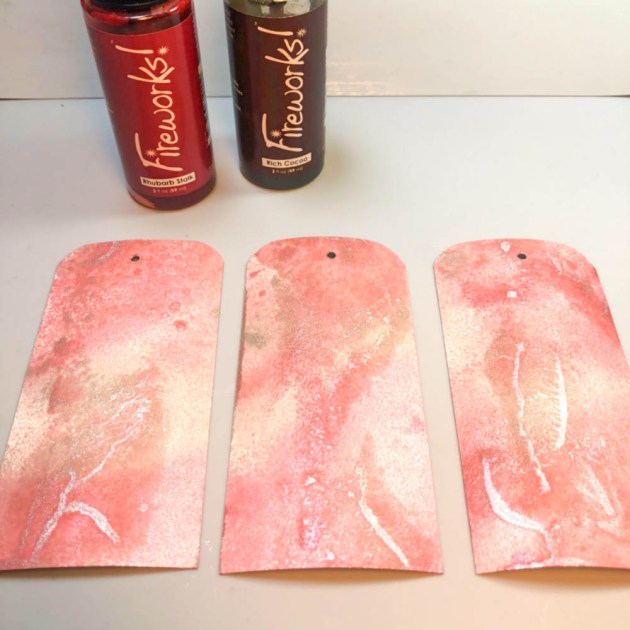 Spray 3 White Tags with Fireworks Spray – Rich Cocoa & Rhubarb Stock