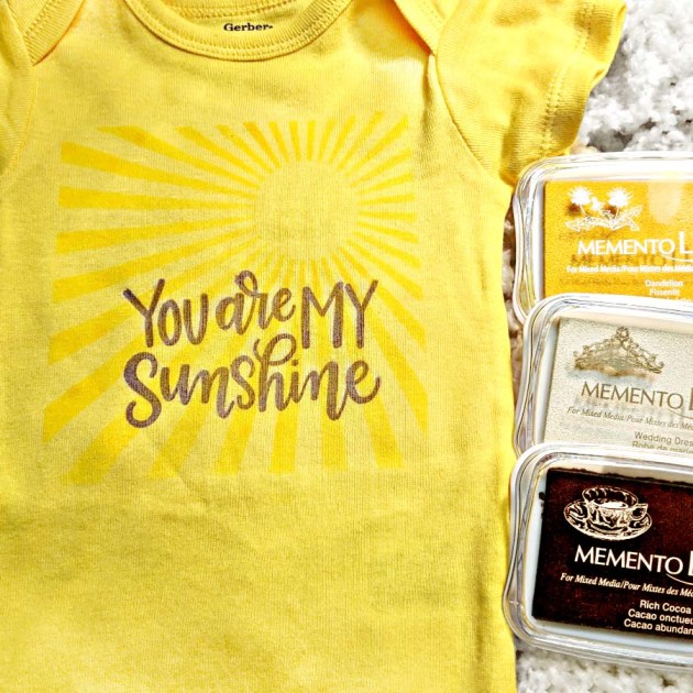Today, I am bringing you not one(sie) but two(sie) projects I made using baby outfits and fabric-safe ink from Imagine. We have a new granddaughter in the family, and I used this opportunity to make these outfits for her and share how I did so. See how easy it is to create a handmade gift for your new little one in your life.