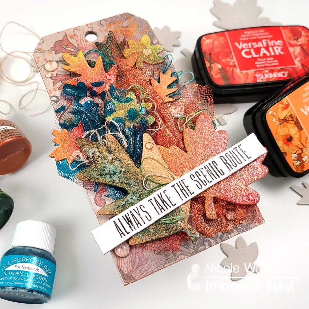 Mixed Media Fall Leaf Tag Décor ft. VersaFine Clair and All Purpose Ink