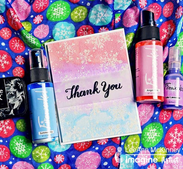 Hey there friends and fellow crafters. I’m here today making a fun quick paper crafting project — Thank You card with a Winter Theme! In this project, I create this card with a stencil, shimmery ink sprays, stamping, and heat embossing. Change the theme to make a thank you card for any holiday year-round.