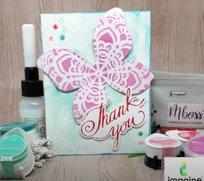 Hello Crafty Friends! Annie Collins here with a quick and easy stenciled butterfly thank you card. See how I make two different versions of the same card design by a simple color change from pink to blue.