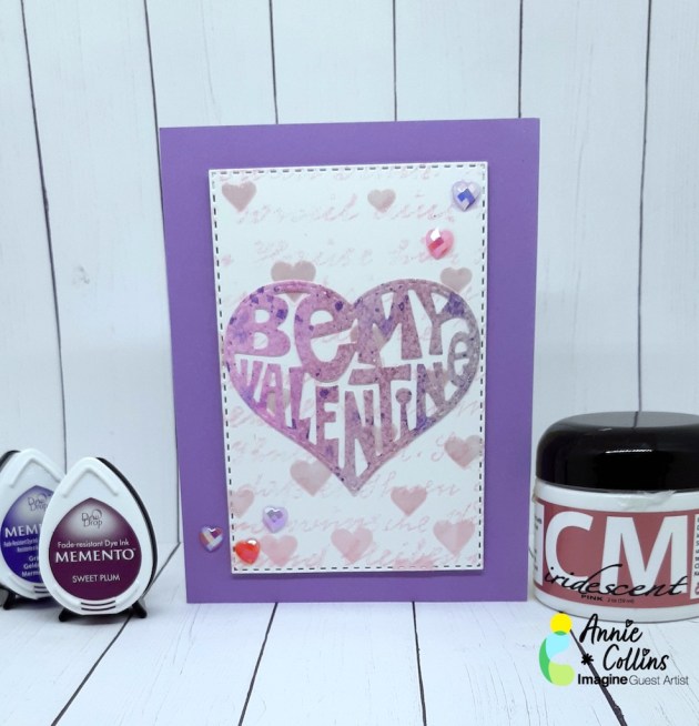 Hello Crafty Friends! Annie here with a fun textured Be My Valentine greeting card. This fun pink and purple card is perfect for your special someone.