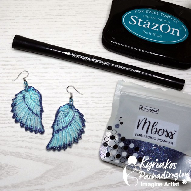 These lightweight earrings in wings shapes that are covered with sparkling Mboss embossing powder are easy to make with few steps using Creative MEDIUM. Match them to your favorite outfit or give them as a gift.