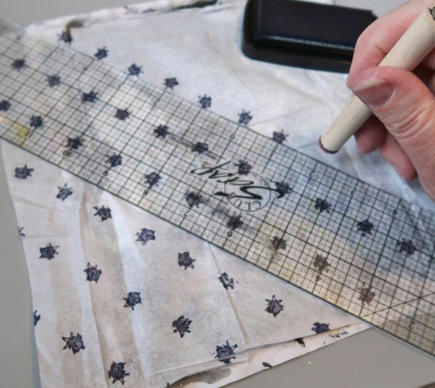 Step 9 – Continue stamping at 1” intervals until the entire piece of tissue paper has been covered.
