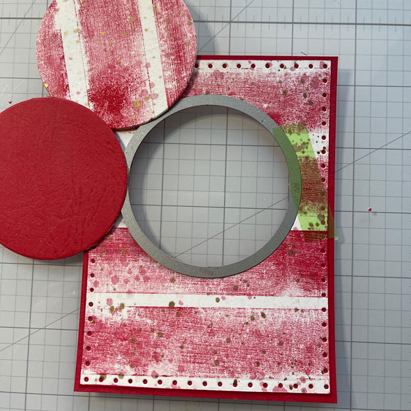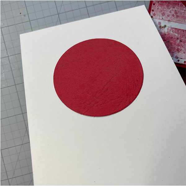 Cut a panel of white card stock slightly smaller than your main panel. Add liquid glue to the back of the red circle. Use your main panel as a guide, place over the white panel and press your circle into place.