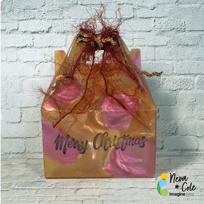 Using StazOn Jet Black, stamp the “Merry Christmas” sentiment on the OUTSIDE of the box.