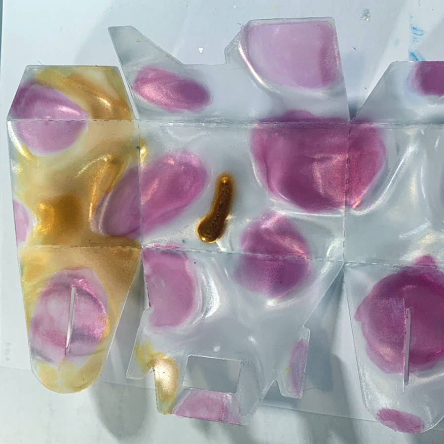 Vertigo is a beautiful translucent material to use in creating projects, in today’s tutorial, I am sharing tips and hints to make your project shine! The perfect ink for this box is StazOn, as it is the only ink that will dry on Vertigo and other plastics.