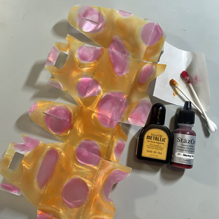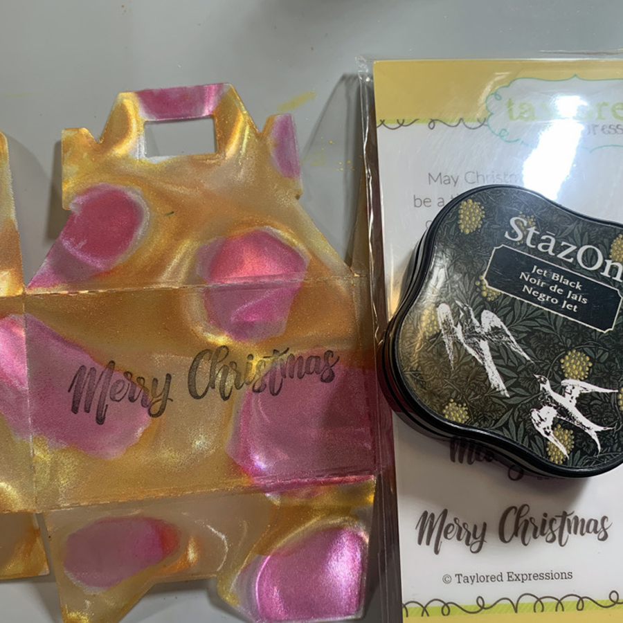To capture more shimmer, apply a drop or two of StazOn Metallic Gold on the INSIDE of the box