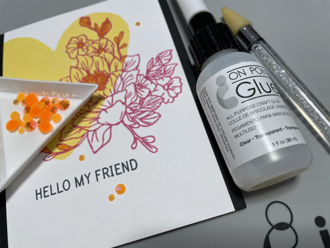 As final step, you can embellish your card using Diamonds on different colors. To paste it, I used On Point Glue.