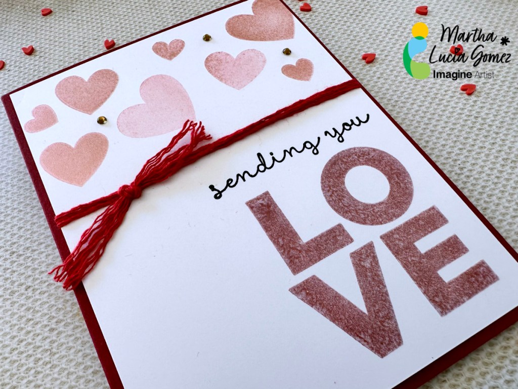 Due to the dimension created with the twine, I pasted the decorated layer over a red card base using crafty foam tape. And voila, my soft and textured Valentine’s Card is ready!