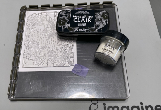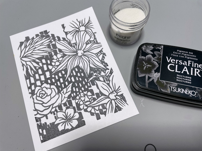 Cover the stamped image with Clear Embossing Power or MBoss. Melt the powder with the heat tool.