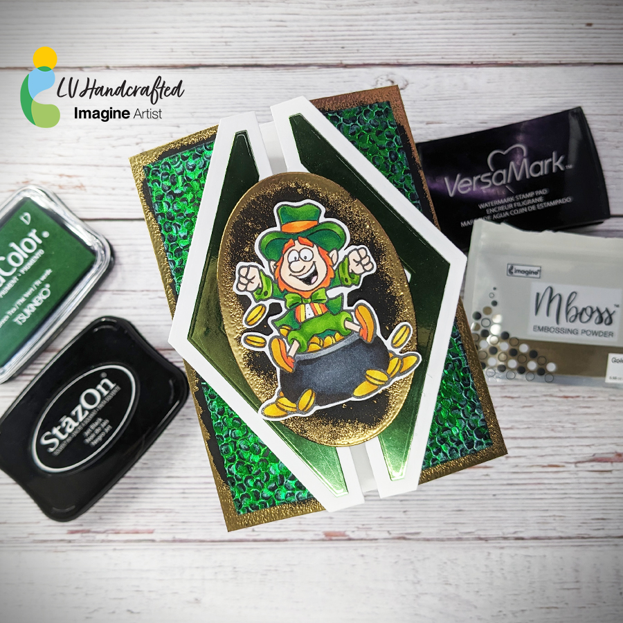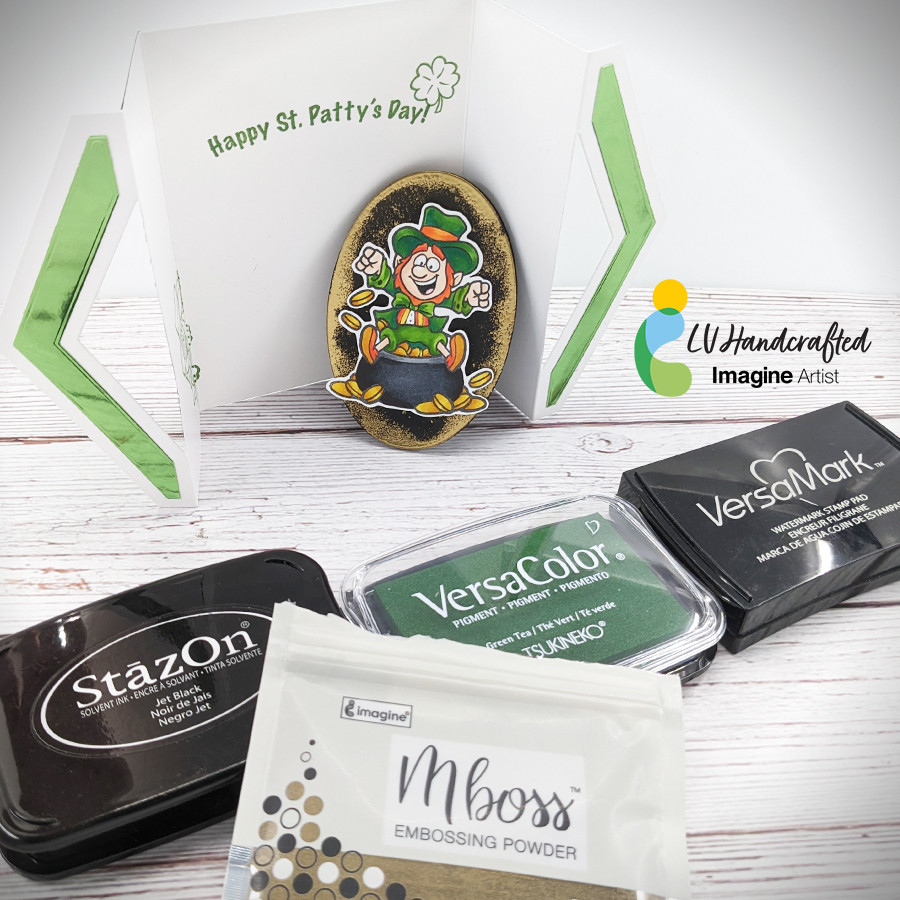 Hello friends! This is Linh (or LV Handcrafted on all the socials). I’ve made this St. Patrick’s Day card featuring some messy embossing techniques. Embossing powders aren’t just for stamped images. They are fun for creating a distressed, mixed media effect as well!