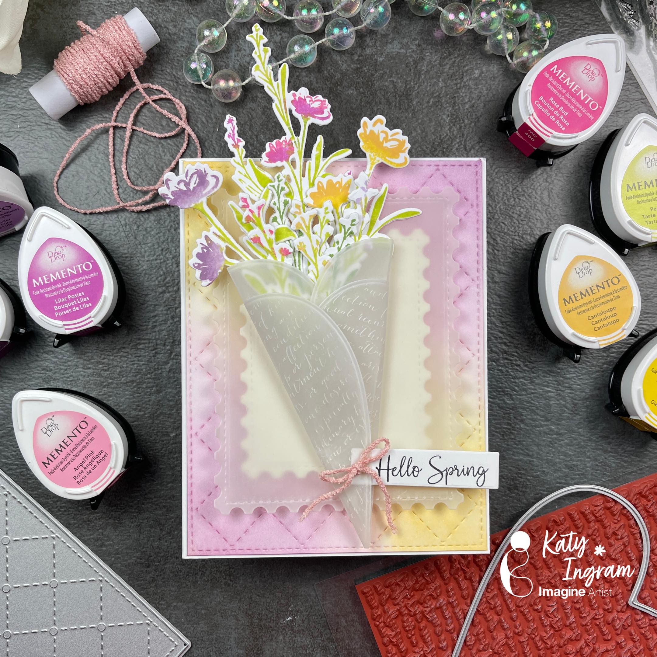 Hello Friends! Katy here and today I am sharing how I used Memento Dew Drop Inks to create a dimensional Spring bouquet.