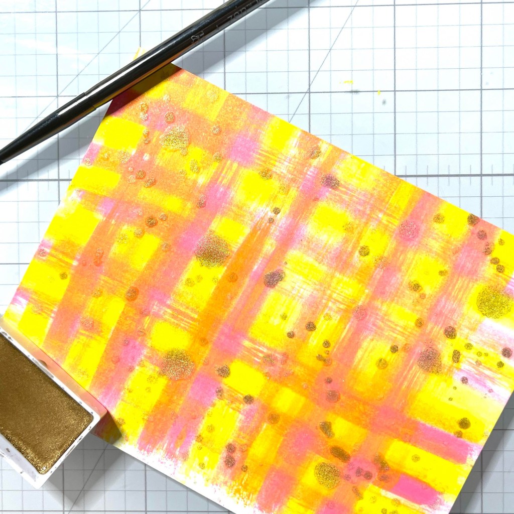 I also unscrewed the top of the Shimmer Spray and splattered some random spots. I splattered some small spots using metallic watercolor paint.