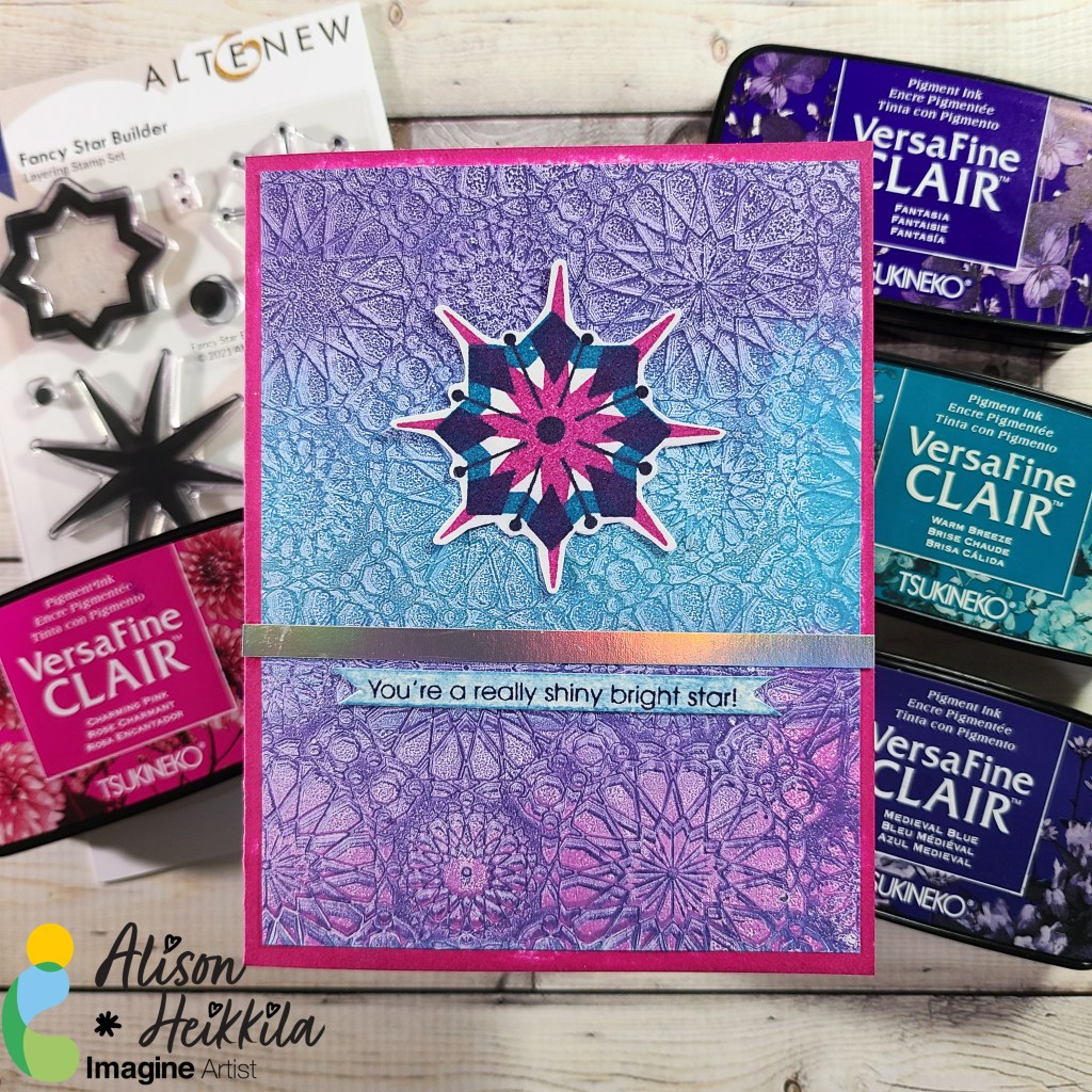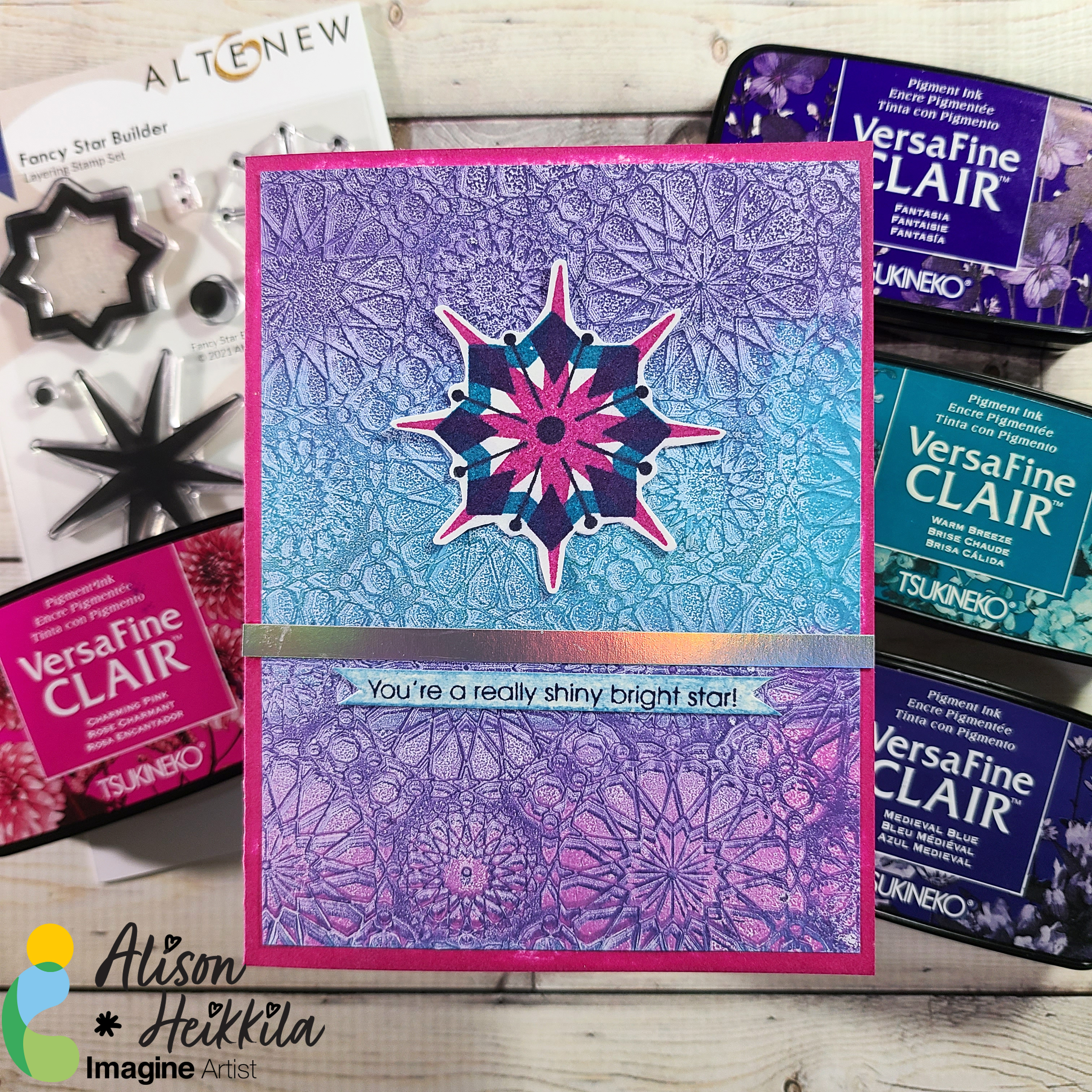 Hello! @AlisonHeikkila here and today and we’ll be focusing on a couple of fun ways to use VersaFine Clair Inks. I love experimenting with different ways to use inks, so I decided to play on my Gel Press Plate and use a detailed 3D Embossing Folder. VersaFine Clair Inks are also great with layering stamps because you can get such crisp images.