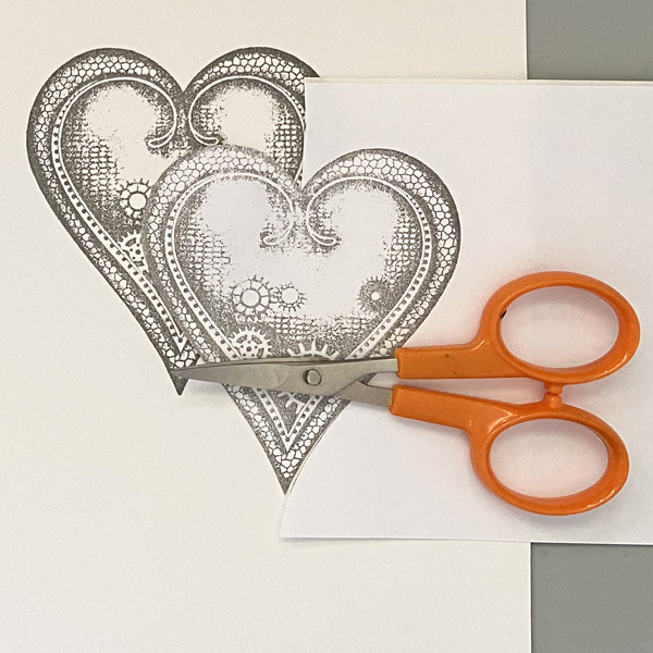 Fussy-cut the label paper heart and place it atop its counterpart on the image panel.